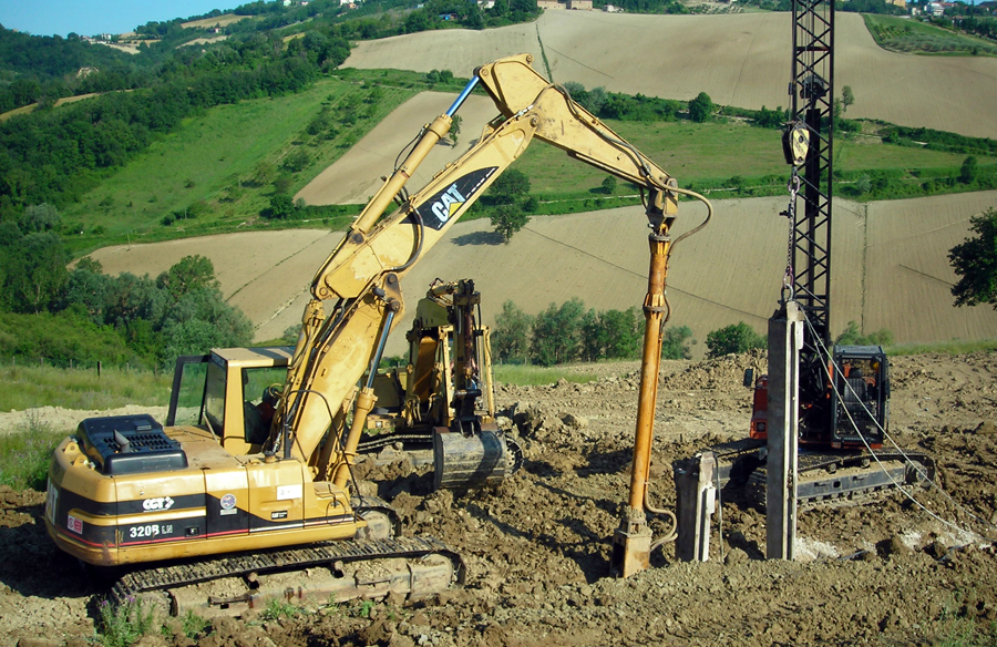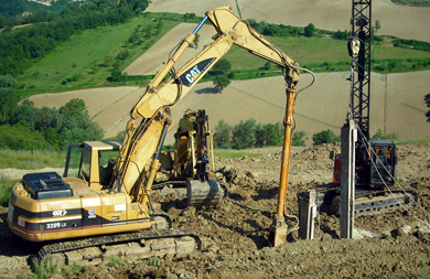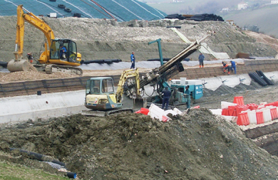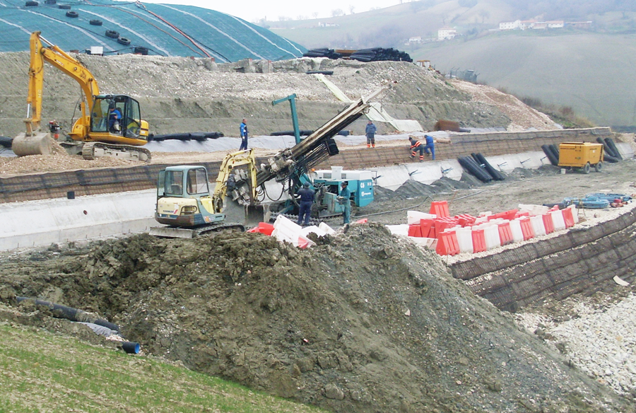 Realizzazione tiranti protezione discarica. Cantiere Tolentino