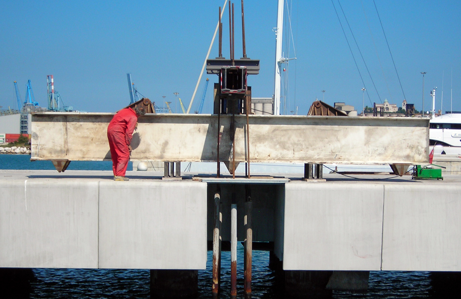 Prova di carico di un pontile. Porto di Ancona